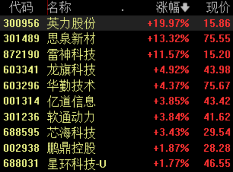 5月21日早盘,AIPC概念股走强,截至发稿,英力股份涨停,思泉新材涨超13%,雷神科技涨超11%,华勤技术、亿道信息、软通动力等纷纷跟涨。
