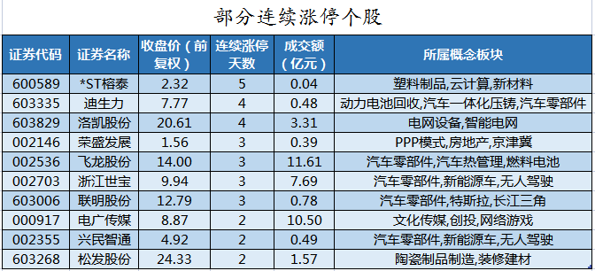 从收盘涨停板封单量来看,荣盛发展最受追捧,收盘涨停板封单有10451.81万股;其次是兴民智通、华电能源,涨停板封单分别有2938.98万股、2262.55万股。以封单金额计算,荣盛发展、兴民智通、迪生力等涨停板封单资金较多,分别有1.63亿元、1.45亿元、1.37亿元。