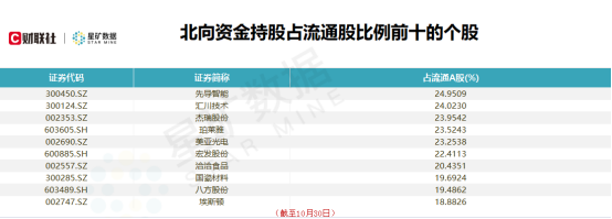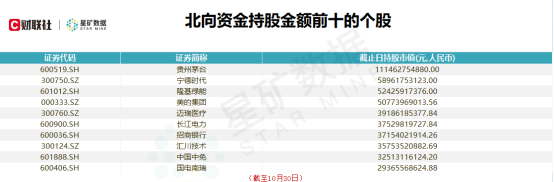 具体到个股来看,星矿资金数据显示本月北向资金累计净买入金额和净买入金额前十个股如下: