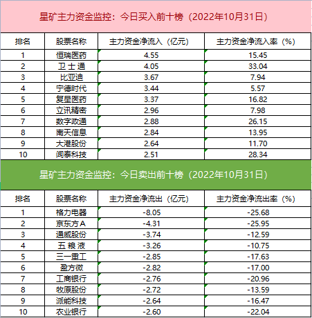 主力资金流出前十的个股中白马股较多,格力电器净流出居首。