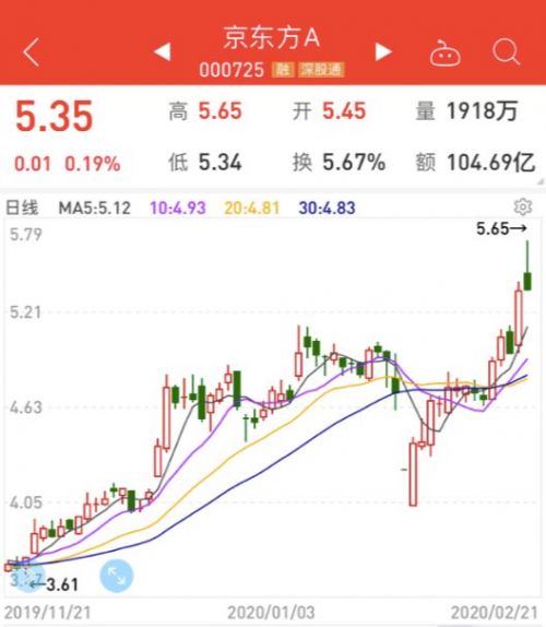 证券时报·数据宝统计显示,本周121股获融资客超亿元加仓,其中京东方A获融资客加仓金额最高,达到8.76亿元,最新融资余额突破80亿元。近期该股股价持续小幅上涨,周五盘中创下一年来新高。京东方A是国内领先的面板龙头企业,是OLED概念的龙头股。据AVC产业数据,2月LCD电视面板价格上涨提速,主流品种上涨2-3美金,明显快于1月份的1-2美金。华创证券表示,武汉是国内LCD面板生产重镇,京东方A、华星光电、天马微等公司都在这里有生产线,由于复工时间推迟,调研公司IHS Markit预计LCD面板会涨价。