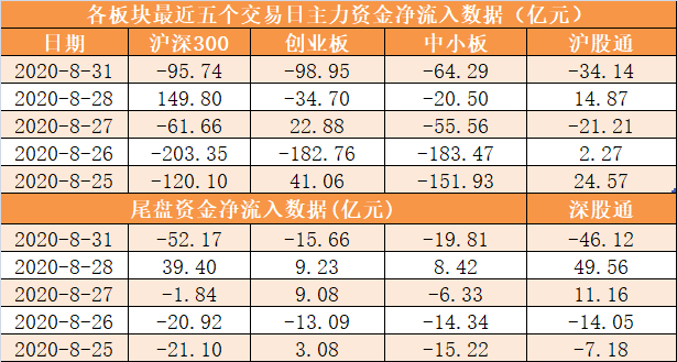 沪深300今日主力资金净流出95.74亿元,创业板净流出98.95亿元,中小板净流出64.29亿元。沪股通净流出34.14亿元,深股通净流出46.12亿元。