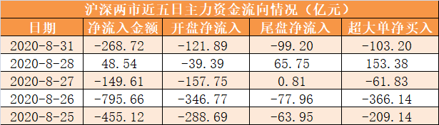 今日沪深两市主力资金开盘净流出121.89亿元,尾盘净流出99.2亿元,两市全天资金净流出268.72亿元。
