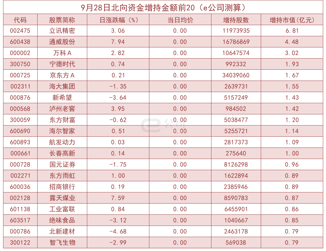 统计数据显示,9月28日北向资金合计净流出10.78亿元。其中沪股通净流出11.16亿元,深股通净流入0.38亿元。北向资金成交金额达到675.30亿元,占A股当日总成交金额比重为12.50%。