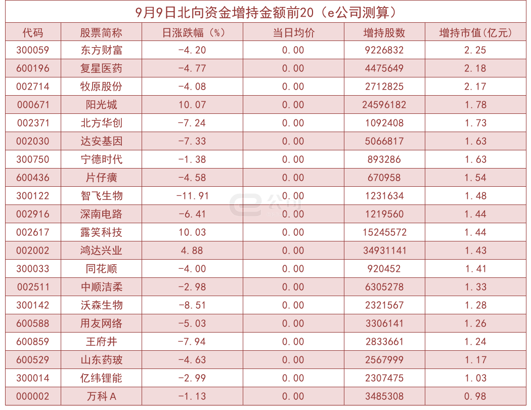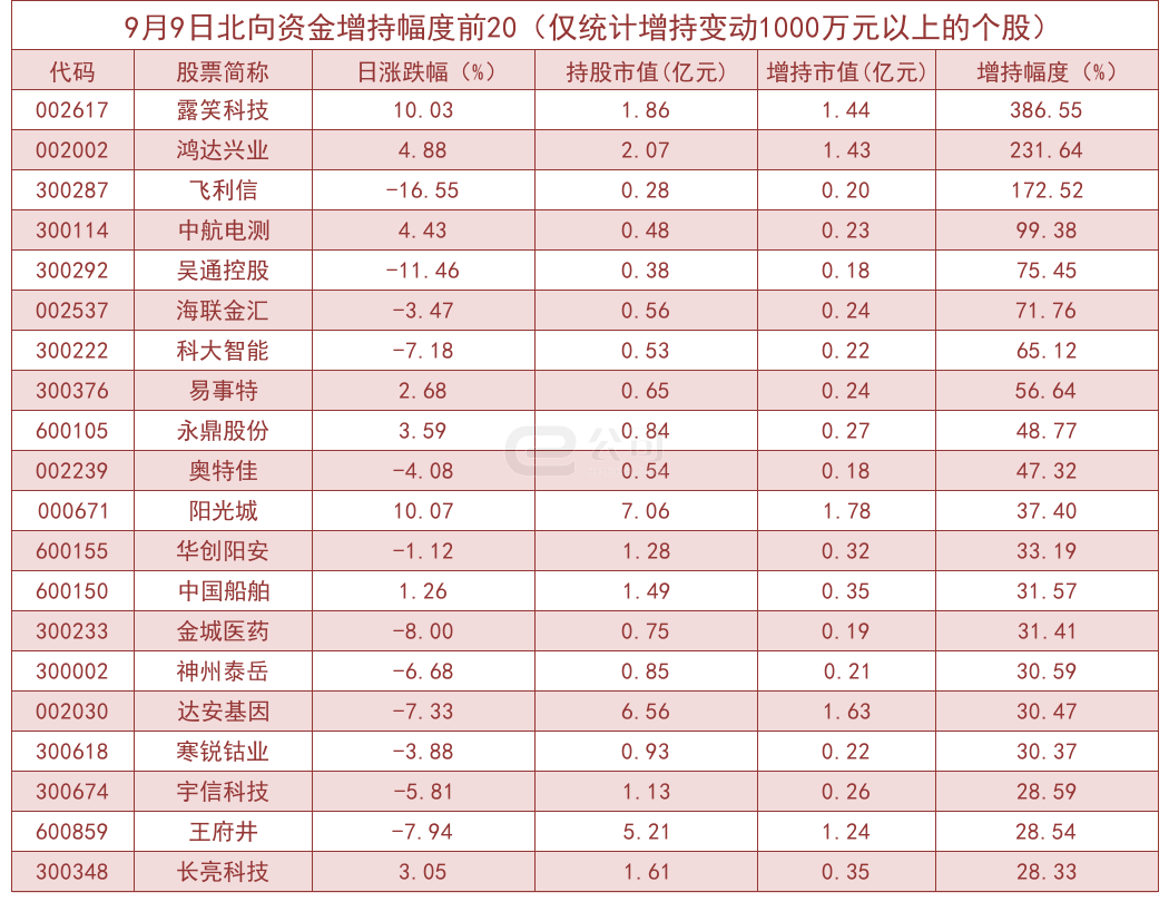 统计数据显示,9月9日北向资金合计净流出37.58亿元。其中沪股通净流出16.40亿元,深股通净流出21.18亿元。北向资金成交金额达到1046.67亿元,占A股当日总成交金额比重为10.10%。