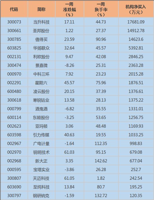 机构龙虎榜本周净买入居前个股