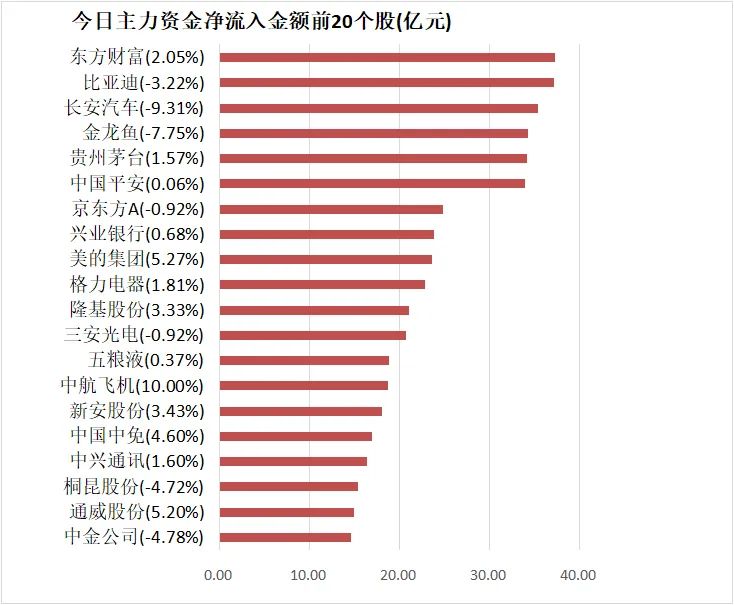 沪深300今日主力资金净流出41.4亿元,创业板净流出21.75亿元,中小板净流出41.06亿元。沪股通净流入13.35亿元,深股通净流出8.96亿元。