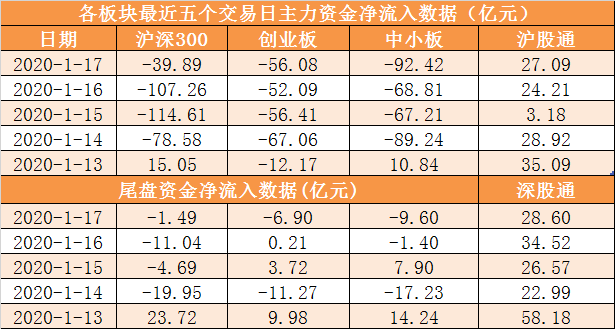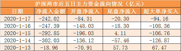 本周两市主力资金累计净流出1103.25亿元。其中周五(1月17日)主力资金开盘净流出84.31亿元,尾盘净流出20.30亿元,全天净流出242.02亿元。