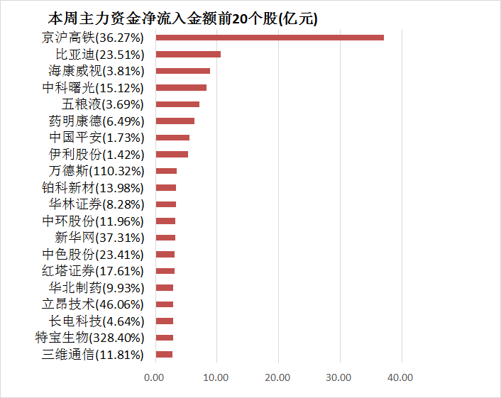 5、京沪高铁本周净流入37.10亿元居首