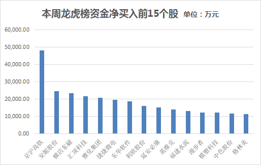 个股龙虎榜净买入金额居前的15只个股分别为: