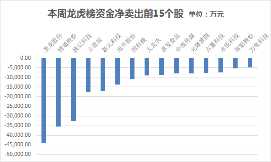 个股龙虎榜净卖出金额居前的15只个股分别为: