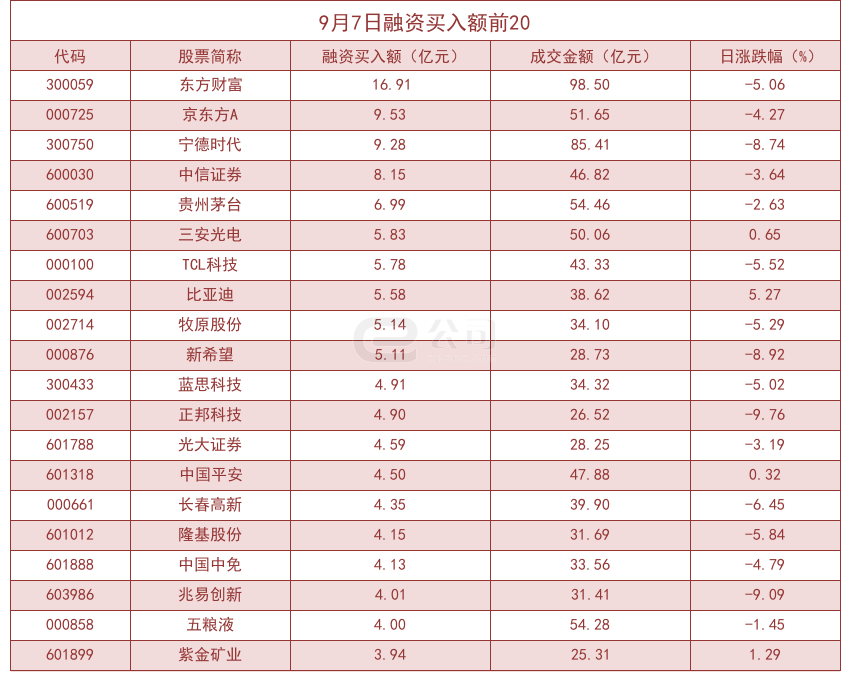 从融资资金买入金额来看,共有193只个股买入金额超亿元,其中东方财富(16.91亿元)、京东方A(9.53亿元)、宁德时代(9.28亿元)居前三位。