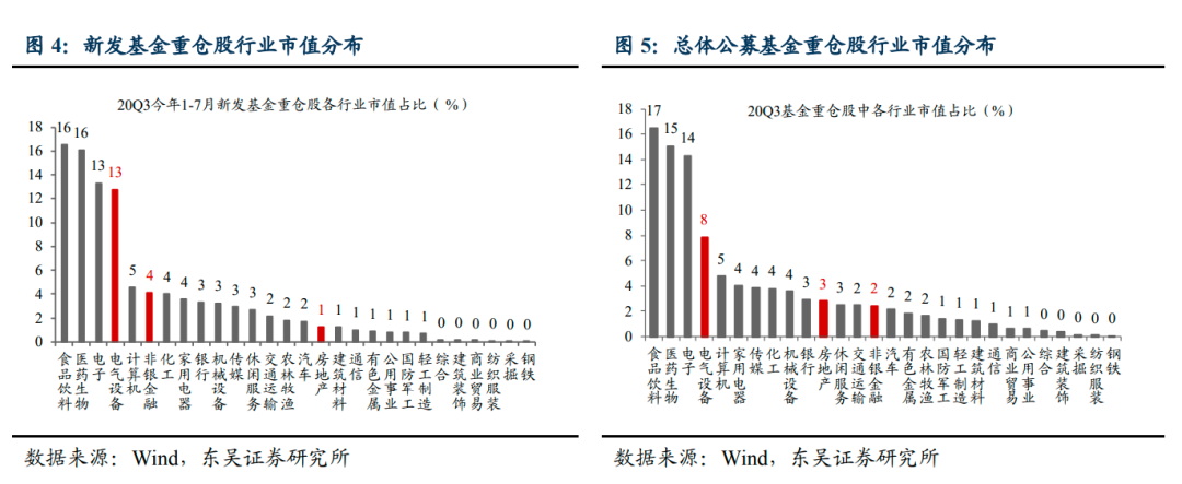 而新发基金对房地产的兴趣不大,持仓市值占比1%,较公募整体的3%还低配2个百分点。