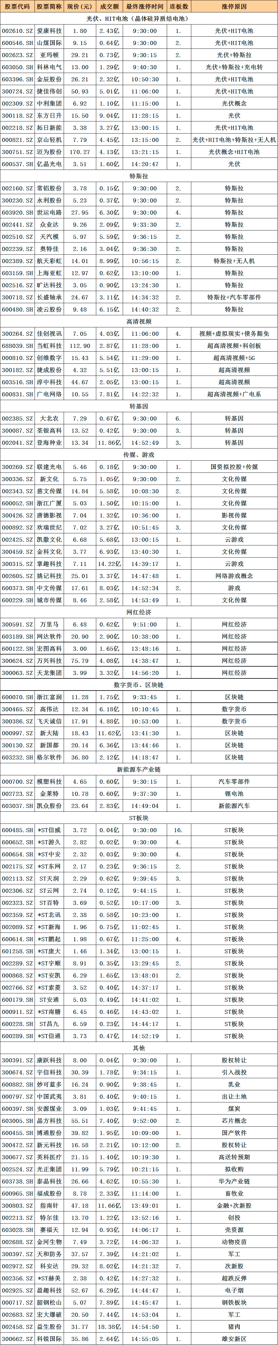 涨停复盘:大北农6连板 特斯拉概念继续上演涨停潮