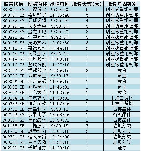 1.创业板壳:创业板借壳有望解禁,盛运环保(叠加环保,5板)、天翔环境(叠加环保,4板)、宝德股份(5板)、天龙光电(3板)等低市值创业板壳资源个股延续涨停。