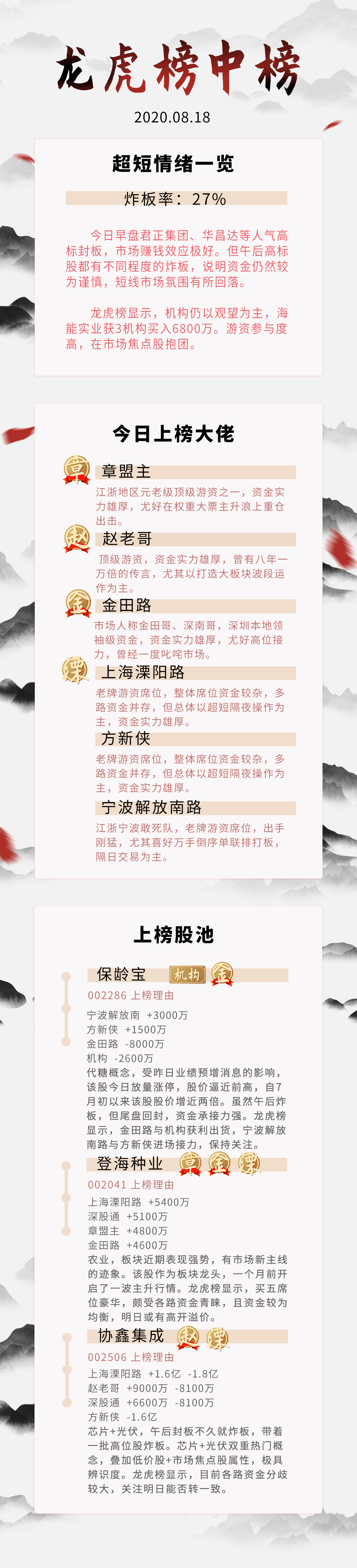 龙虎榜:机构、金田路板砸1亿保龄宝