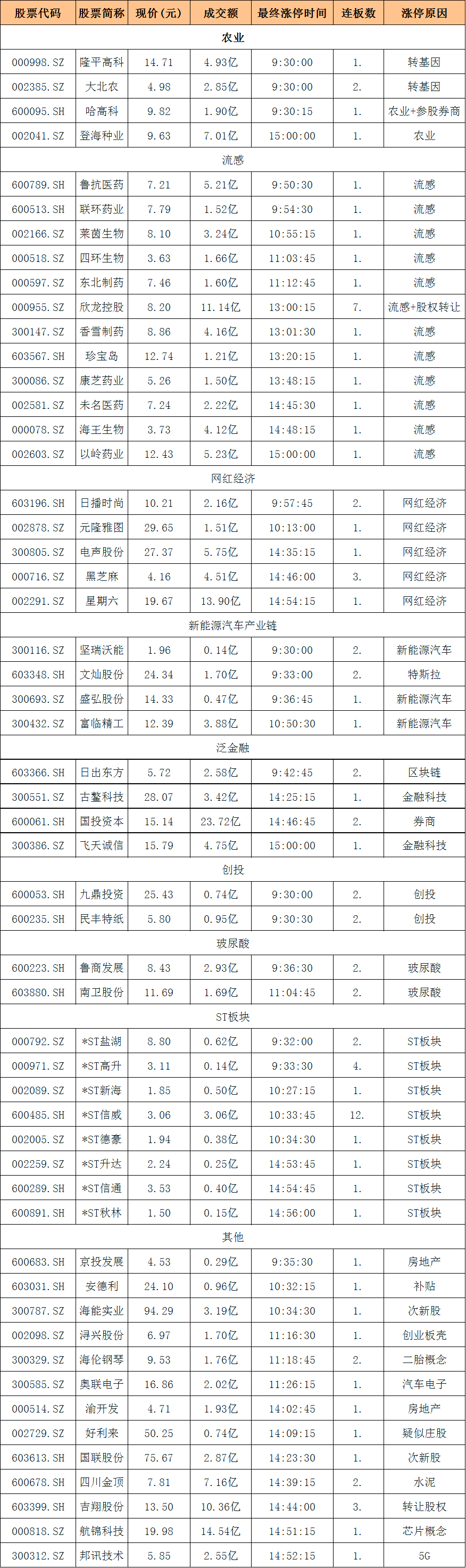 涨停复盘:高位股回暖 流感医药板块全线爆发