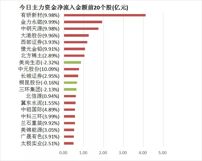 概念板块方面,今日稀土永磁、稀土、小金属、西藏振兴等概念板块资金呈现净流入,其中稀土永磁概念净流入12.23亿元居首。