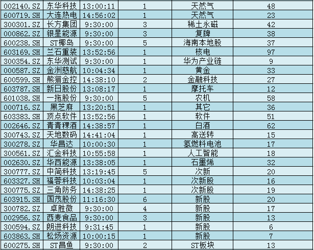 三、今日涨停个股一览