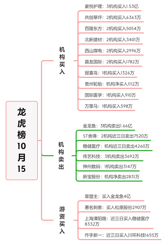 盘后龙虎榜显示,机构参与度较昨日低,整体仍以买入为主。卫生护理概念豪悦护理获3机构买入1.53亿,净买入金额超千万的仍有10股。游资参与热情大幅降低,资金观望情绪较浓。不过有一点可以注意下,章盟主在新股金龙鱼上押注了4个亿左右。
