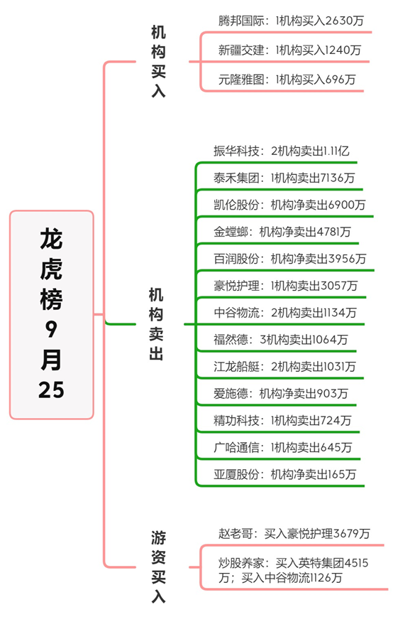 龙虎榜显示,机构参与度依然较低,整体呈现净卖出的状态,仅两家机构买入金额超千万。“免税+旅游+金融”概念股腾邦国际获1机构买入2630万;新疆概念股新疆交建获1机构买入1240万。短线氛围惨淡,游资参与度更低。