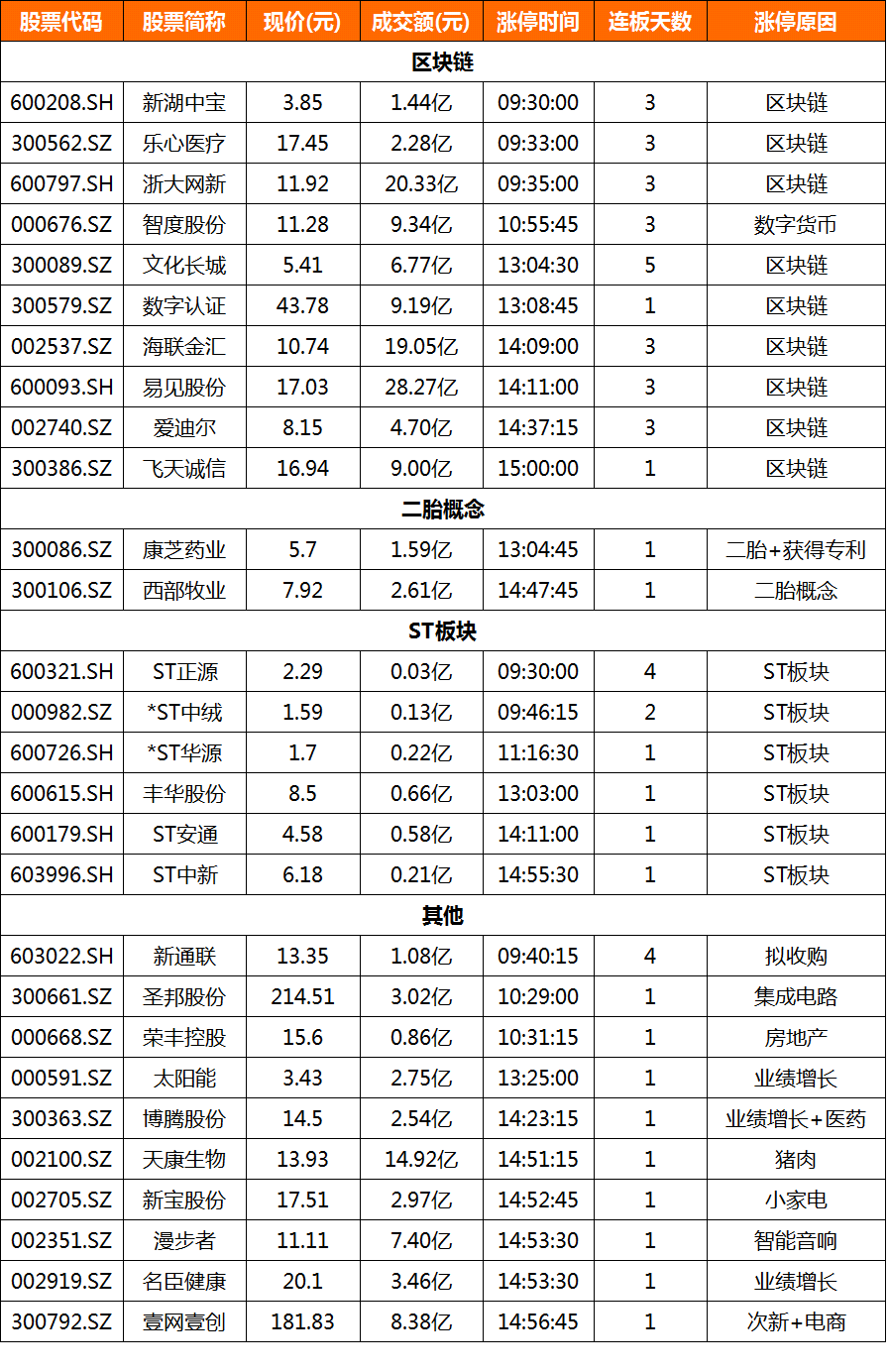区块链——浙大网新、新湖中宝、易见股份:只有新湖中宝封死,但没有其他标的支撑,明天也是开板的节奏。