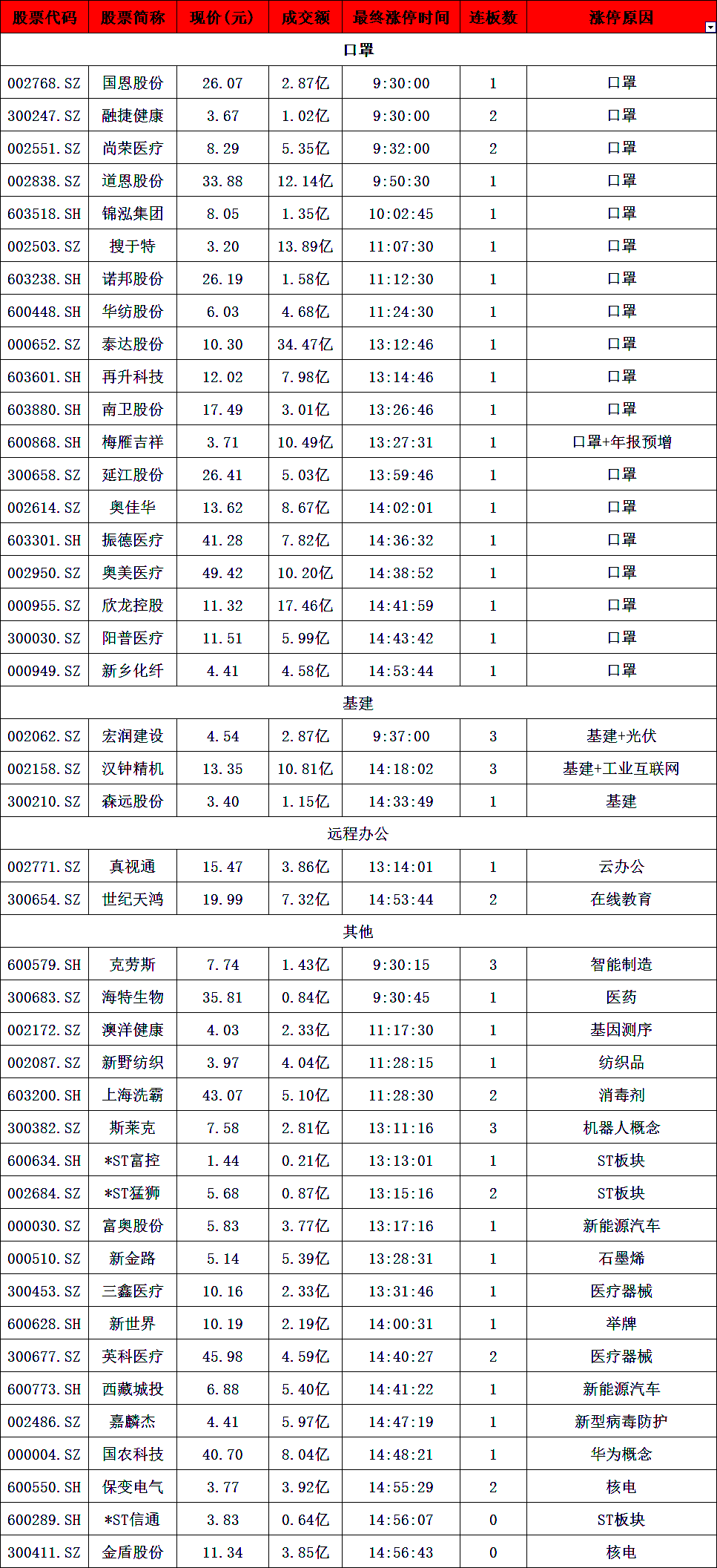 涨停复盘:跌停股数远超涨停股 口罩概念一枝独秀
