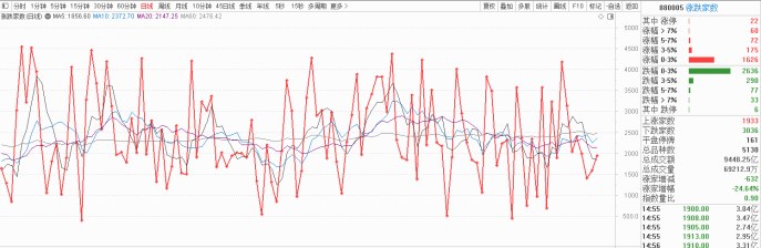 整体来看,市场上午出现了同步调整态势,虽然午后又V了起来,但各大指数分时图看,基本都是黄线在下的状态,这就意味着个股仍然是缺乏活跃度,当下市场赚钱难度依旧较大,比较考验大家的水平。
