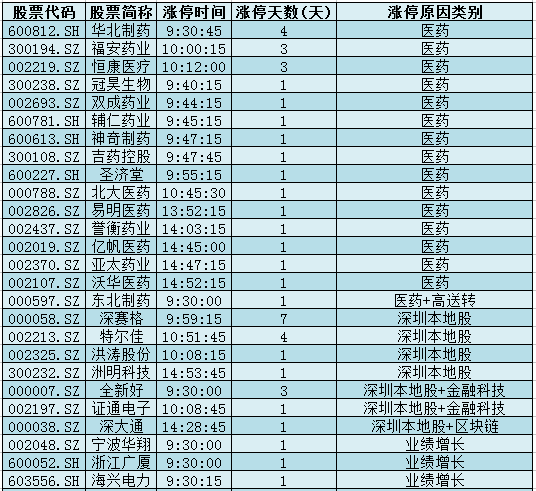 1.医药:药品管理法鼓励支持创新药+新医保目录发表,华北制药、福安药业、恒康医疗、冠昊生物、双成药业、辅仁药业、神奇制药、吉药控股等涨停。