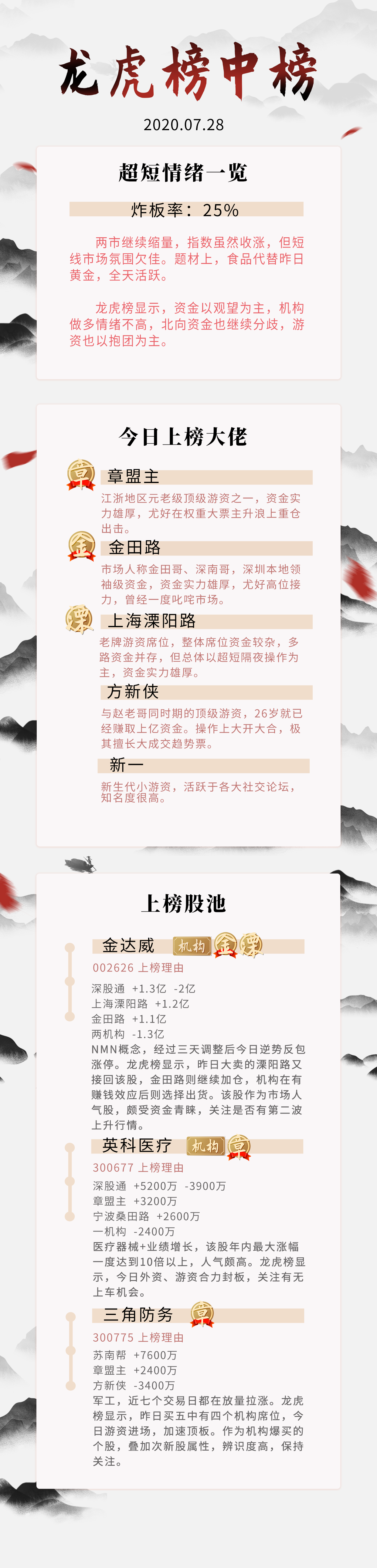 龙虎榜:金田路爆买NMN概念龙头金达威