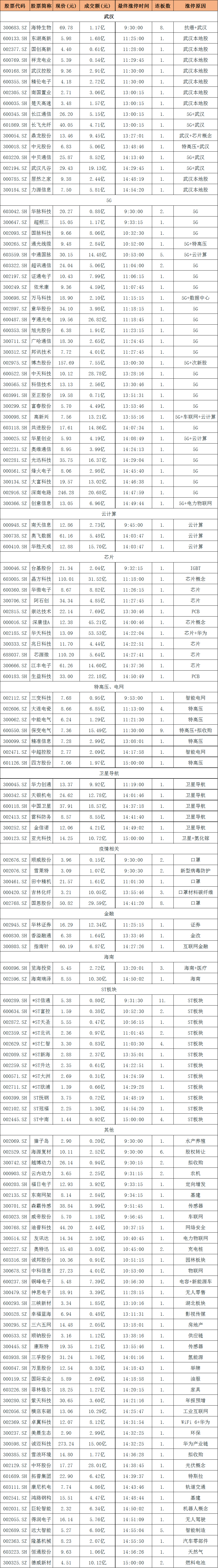 涨停复盘:5G板块超30股涨停 武汉本地股崛起