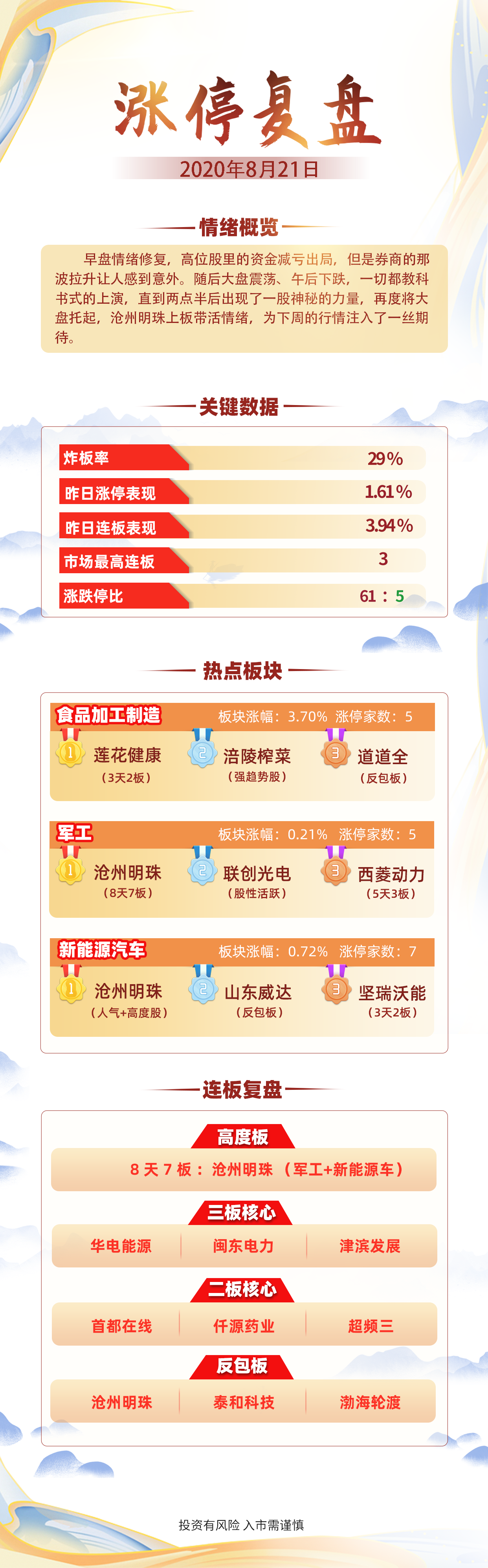 涨停复盘:食品股掀涨停潮!涪陵榨菜封板