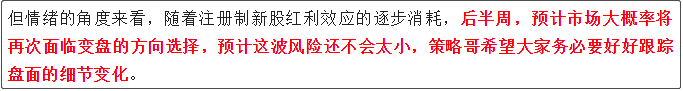 中长期上,策略哥的观点一直很明确:创业板指目前的头部结构依旧未能得到扭转。所以,对于创业板指数,中长期来看,很难有大机会,但注册制新规之下,局部的创业板个股依旧充满着大肉机会,做做短线游击完全没问题,这两者并不矛盾