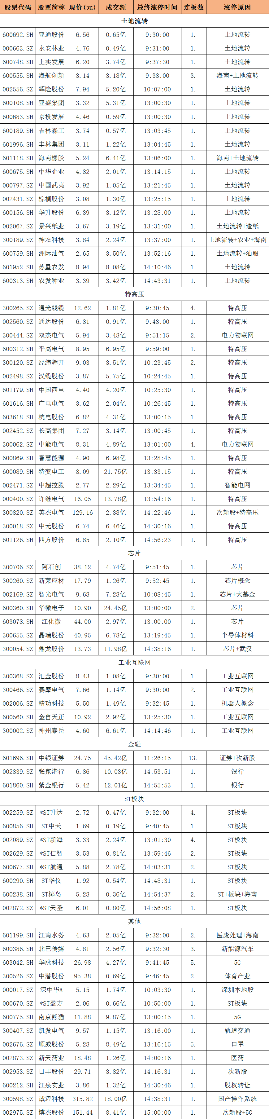 涨停复盘:土地流转概念强势崛起 特高压板块依旧火热