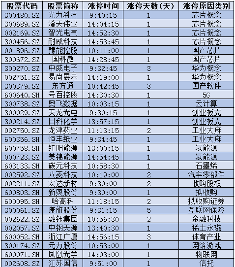 1.芯片:中国存储芯片领域迎来突破,光力科技、澄天伟业、智光电气、耐威科技、豫能控股、国科微涨停。