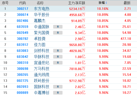 这里,5G板块,今日表现强势,涨停板家数达15家,是两市涨停最多的板块,万马科技、中通国脉等多只个股涨停,强势特征明显。