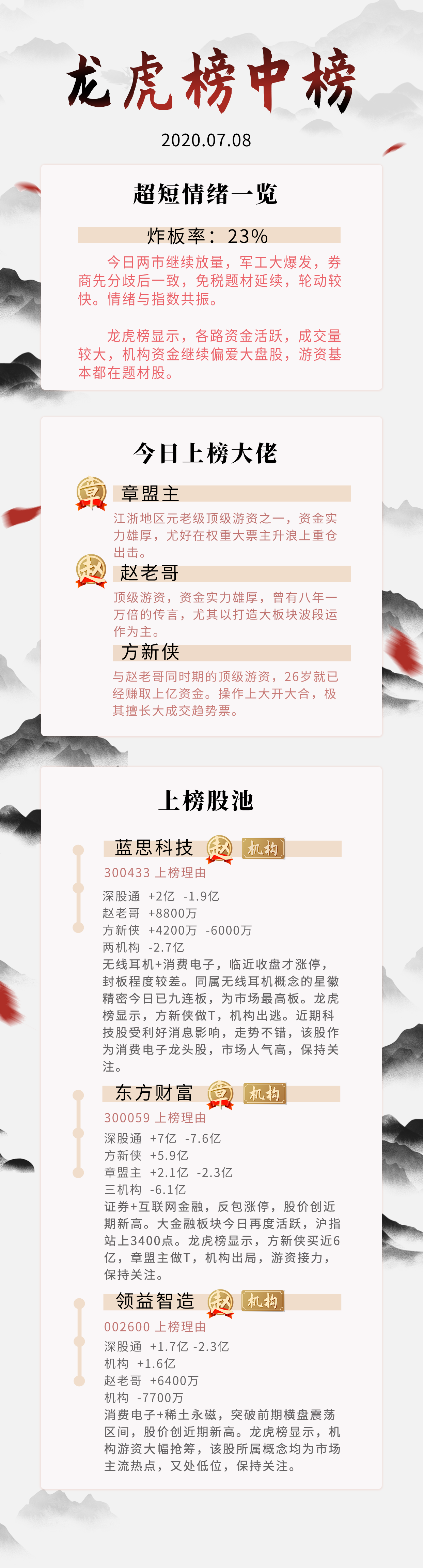 龙虎榜中榜:三机构抛逾6亿东方财富