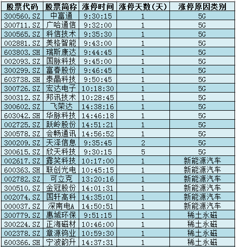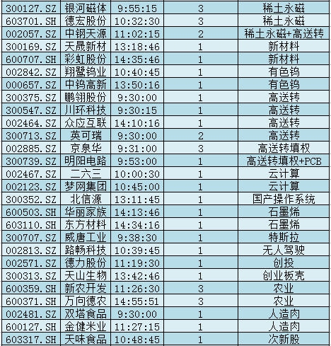 2.稀土永磁:发改委两天三次会议,稀土重磅政策有望出台,中钢天源、德宏股份、正海磁材、章源钨业、宁波韵升、银河磁体等涨停