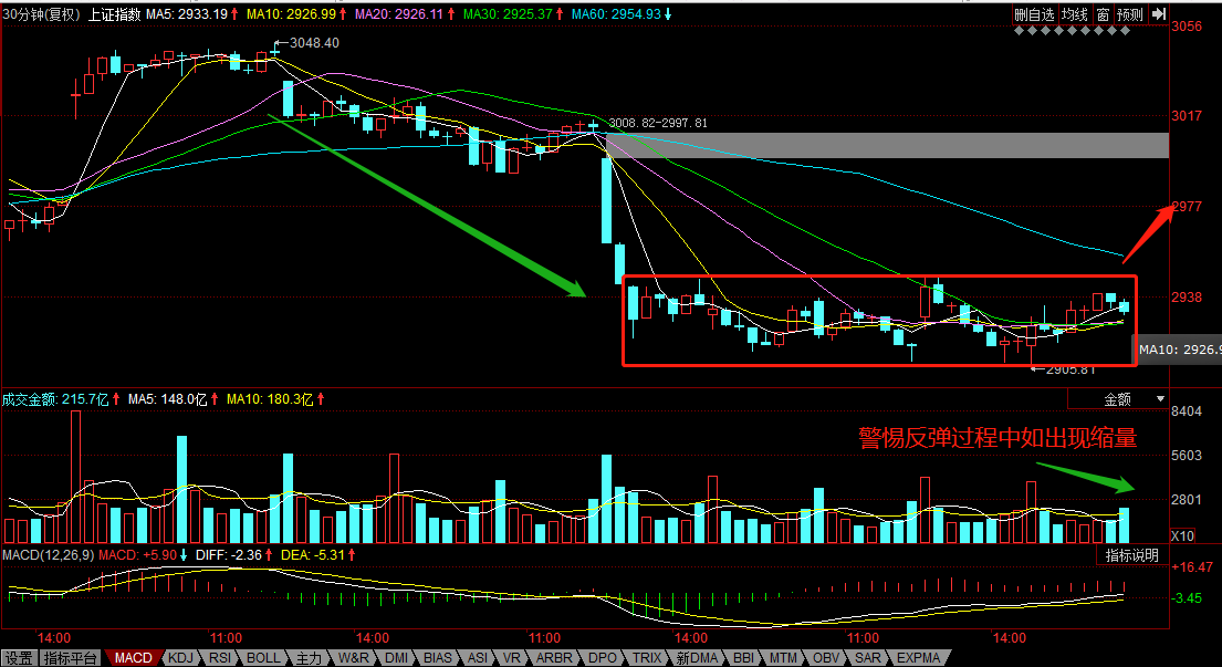 未来走势将会如何演变?短期可以关注上证指数30分钟K线,当前处于一波下跌后的震荡盘整走势,下周将进行方向选择,如果反弹过程中出现缩量上涨,投资者需谨慎,不可贸然追涨。