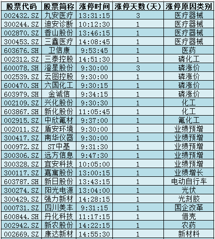 2.黄磷涨价:供应骤降二成黄磷价格跳涨15%,三泰控股、澄星股份、云图控、六国化工、金诚信等个股涨停。