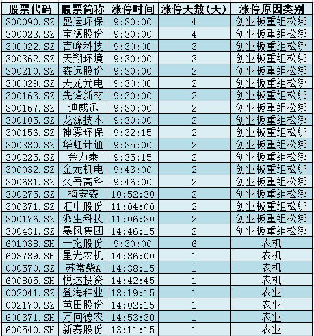 1.创业板壳:创业板借壳有望解禁,盛运环保(叠加环保)、天翔环境(叠加环保)、兴源环境(叠加环保)、宝德股份、吉峰科技、天龙光电等低市值创业板壳资源个股延续涨停。