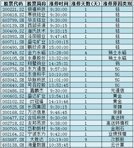 1.钴+稀土永磁:全球最大铜钴矿停产钴价上涨+美将对中3000亿美元商品加关税 ,金力永磁(4板)、银禧科技、寒锐钴业、华友钴业、西部资源等涨停。