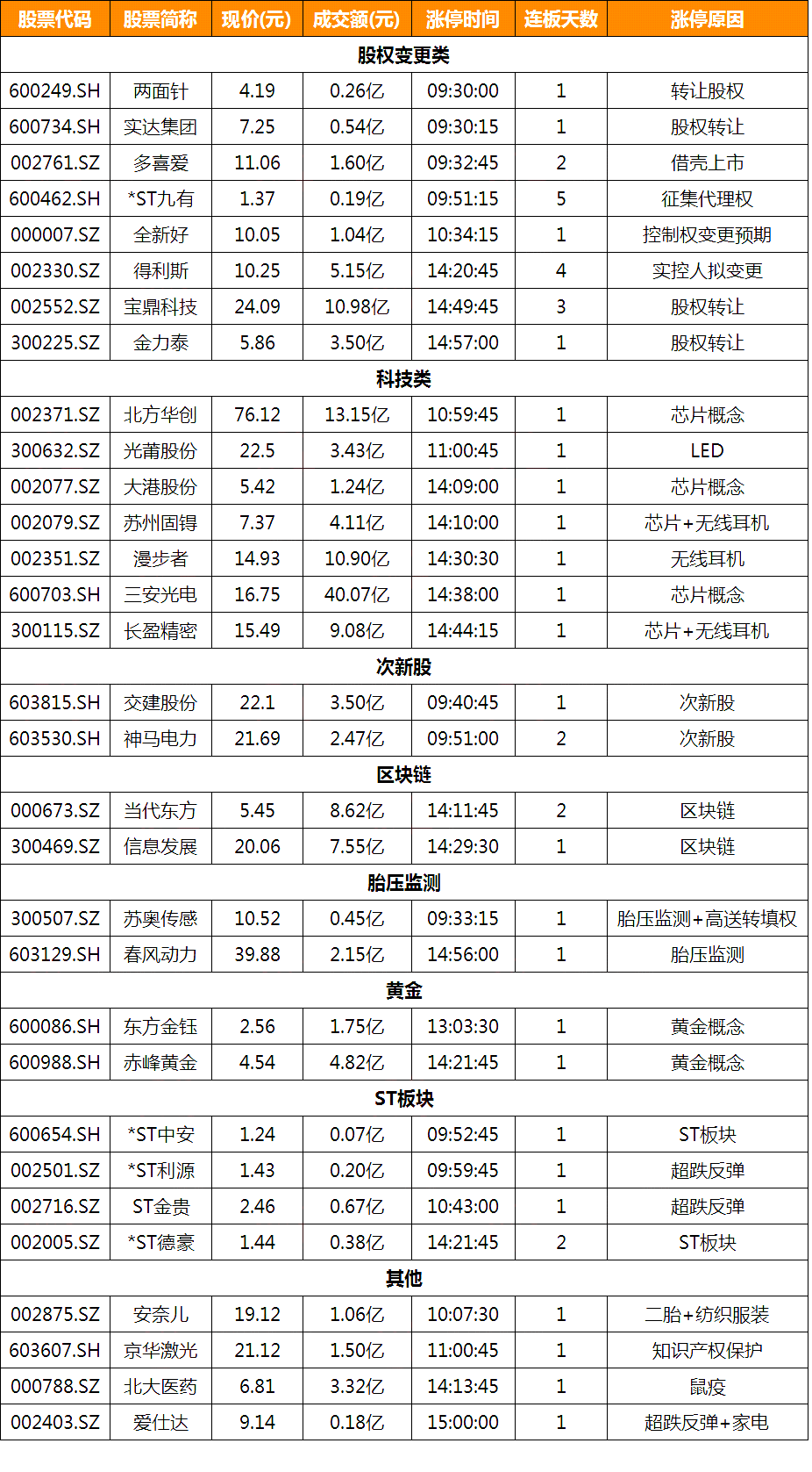 涨停复盘:股权转让热度不减 科技蓝筹股引领方向