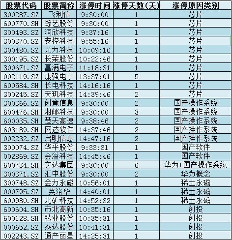 1.芯片+国产操作系统:集成电路与软件产业获政策力挺,飞利信、综艺股份、润欣科技、康强电子、创意信息、湘邮科技等个股涨停