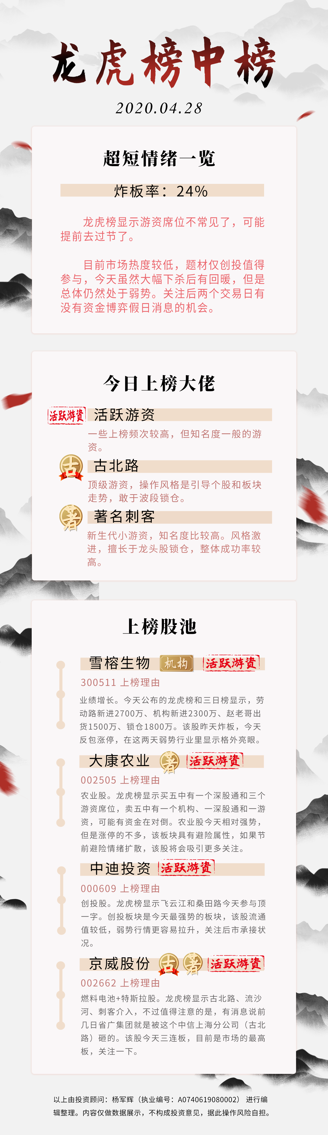 掘金龙虎榜:逆势大涨!赵老哥锁仓雪榕生物