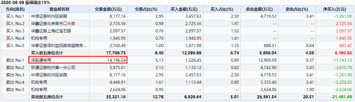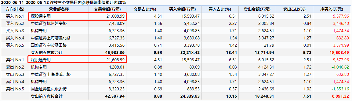 大家再看一下6月11-12日的龙虎榜,深股通又重新买卖了2.16亿;