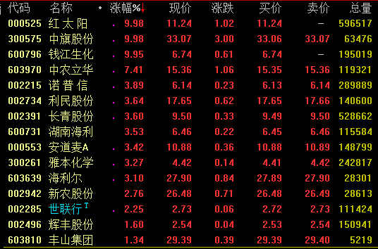 农药板块今日盘中震荡上扬,截至收盘,红太阳、中旗股份、钱江生化等涨停,中华立农涨逾7%。
