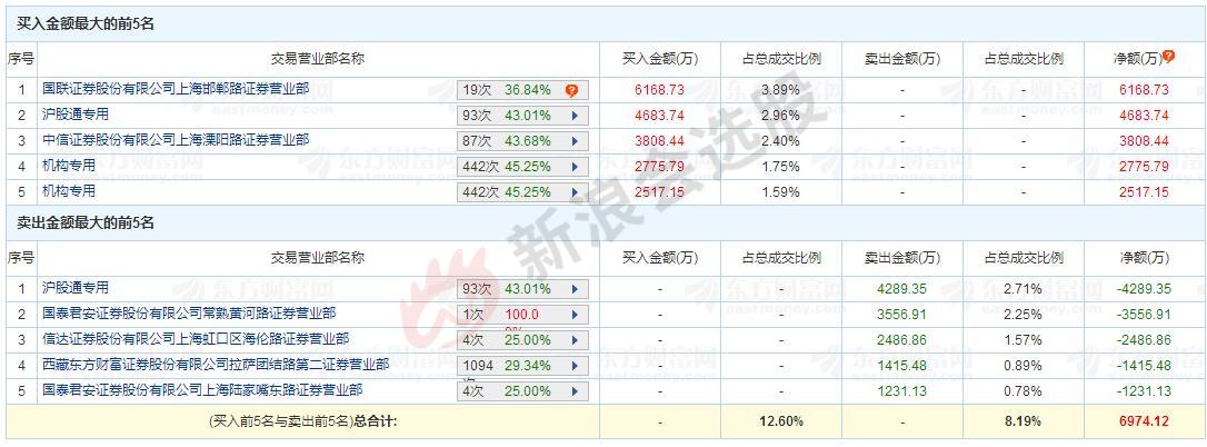 今日龙虎榜单上出现了沪股通的身影,占据了买二、卖一的位置,净买入394.39万元,占当日成交总额的0.25%。