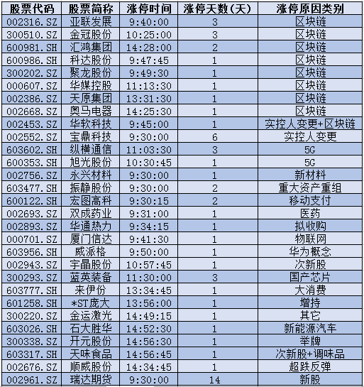 1.区块链:数字货币受关注,亚联发展、金冠股份、汇鸿集团、科达股份、聚龙股份、华媒控股、天原集团、奥马电器涨停。