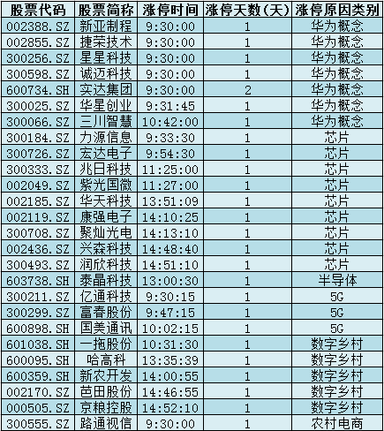 1.华为概念+芯片:无惧打压,备胎芯片一夜转“正”,新亚制程、捷荣技术、星星科技、诚迈科技、兆日科技、紫光国微等个股涨停